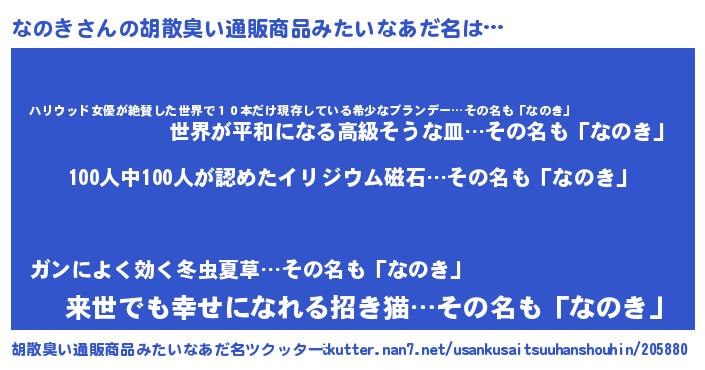 | ヘコむあだ名 | 『なのき(爆)』『酢こんぶ』 |