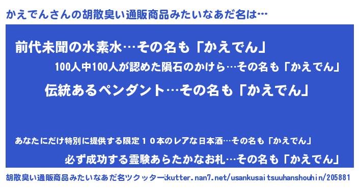 | 欧米人風あだ名 | 『ウサインかえでん』『マイケルかえでん』 |