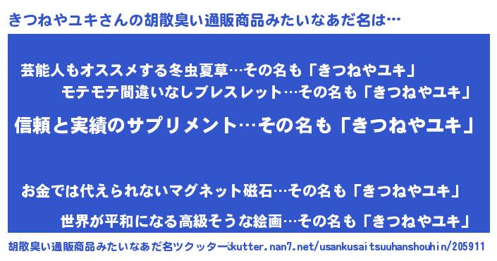 | 意味不明あだ名 | 『とにかく怪しいきつねやユキ』 |