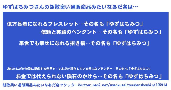 | ヒーロー風カッコイイあだ名 | 『ネオユズハチミツ』『魔戒騎士ユズ』 |