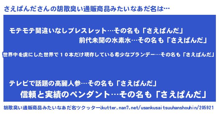 | 意味不明あだ名 | 『住所不定無職さえぱんだ(93歳)』 |