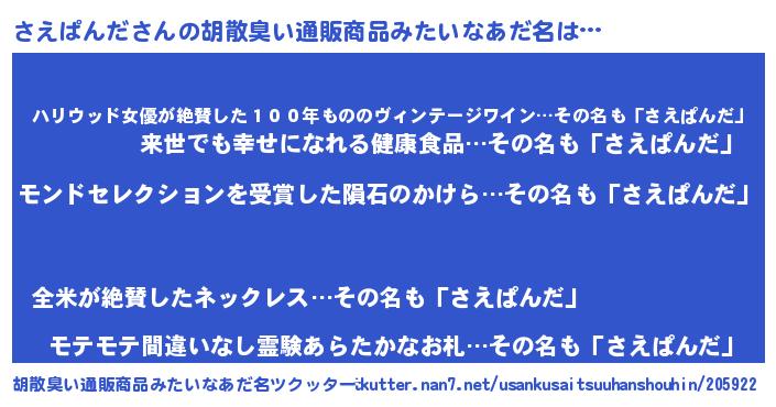 | ヒーロー風カッコイイあだ名 | 『慈愛の使者さえぱんだ』『仮面サエダー』 |