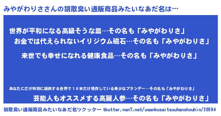 | ヘコむあだ名 | 『みやがわりさ(笑)』『牛乳』 |