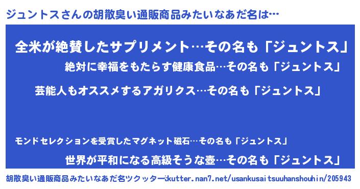 ジュントスさんの胡散臭い通販商品みたいなあだ名をツクッター!