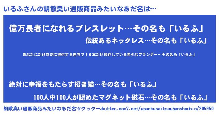 | 意味不明あだ名 | 『住所不定無職いるふ(93歳)』 |