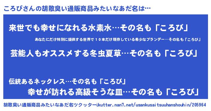 | 意味不明あだ名 | 『自称ころび』『永久保存ころび』 |