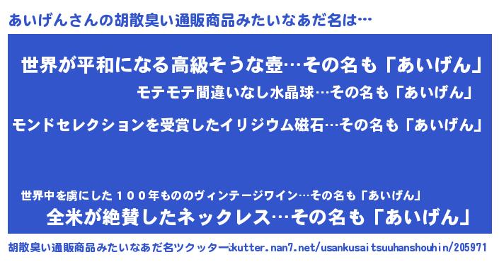 | 欧米人風あだ名 | 『ダニエルあいげん』『ウサインあいげん』 |