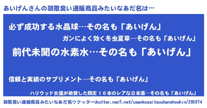 | 欧米人風あだ名 | 『ダルビッシュあいげん』 |