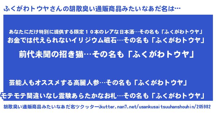 | 意味不明あだ名 | 『永久保存ふくがわトウヤ』 |