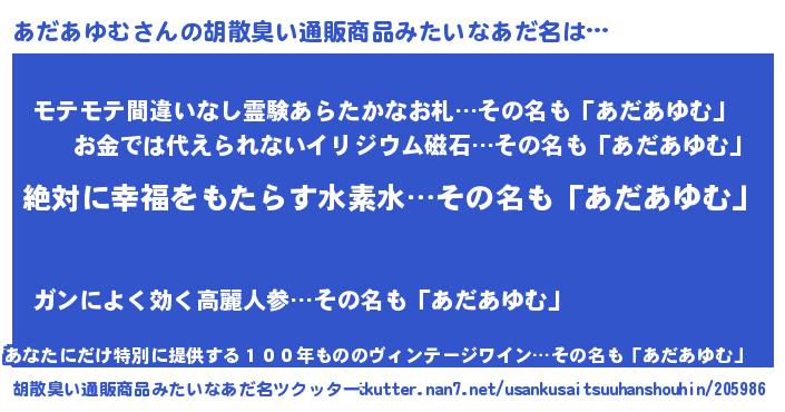 | ヘコむあだ名 | 『あだあゆむ(震え声)』『あだっふぃ~』 |