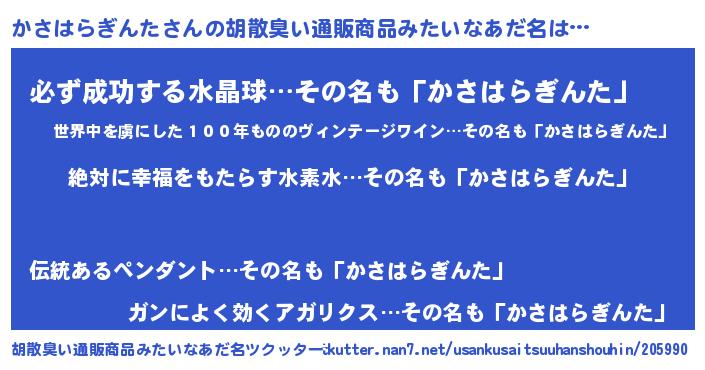| 意味不明あだ名 | 『永久保存かさはらぎんた』 |