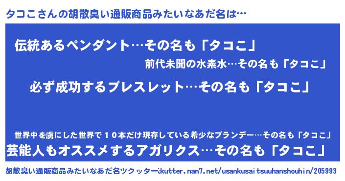 | 欧米人風あだ名 | 『トリンドルタコこ』『マイケルタコこ』 |