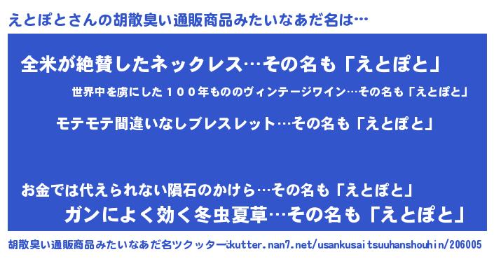 えとぽとさんの胡散臭い通販商品みたいなあだ名をツクッター!