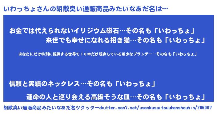 | 意味不明あだ名 | 『住所不定無職いわっちょ(95歳)』 |