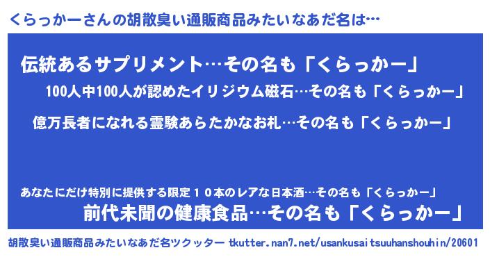 | 欧米人風あだ名 | 『アンジェラ・くらっかー』 |