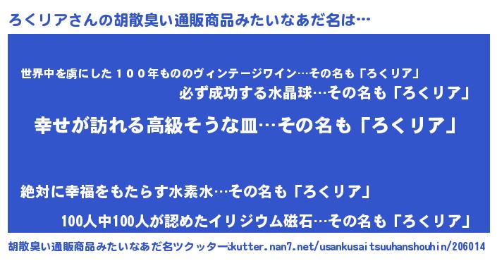ろくリアさんの胡散臭い通販商品みたいなあだ名をツクッター!