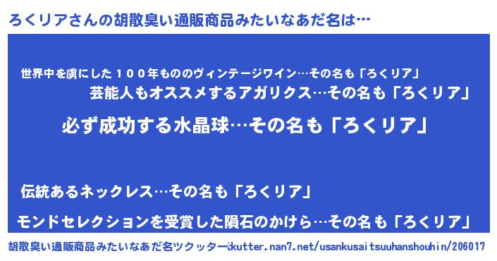 | 恥ずかしいあだ名 | 『プリティーろくリア』『ロクリンリン』 |