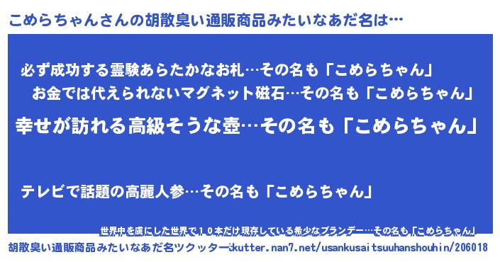 | 男性向けラノベタイトル風あだ名 | 『やはりこめらちゃんの青春ラブコメはまちがっている 』 |