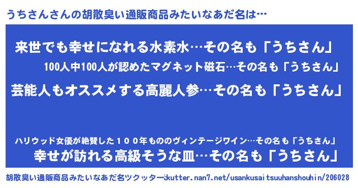 | ヘコむあだ名 | 『うちさん(笑)』『なまこ酢』 |