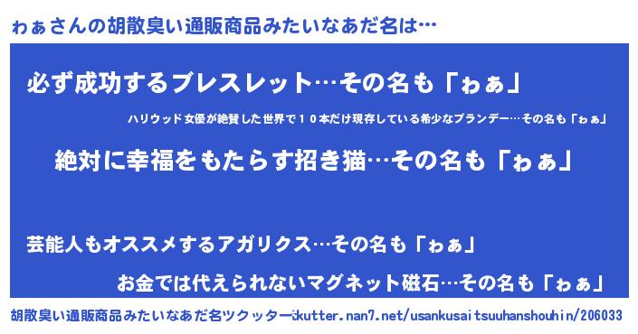 | ファンタジー風あだ名 | 『ヮァディッシュ』『ヮァフェル』 |