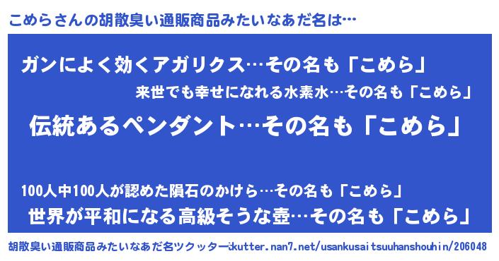 | 男性向けラノベタイトル風あだ名 | 『ダンジョンにこめらを求めるのは間違っているだろうか』 |