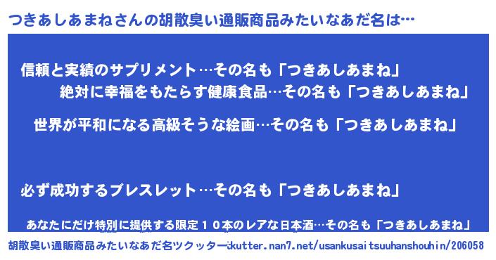 | 意味不明あだ名 | 『つきあしあまねフォーエバー』 |