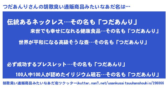 | 意味不明あだ名 | 『つだあんりフォーエバー』 |