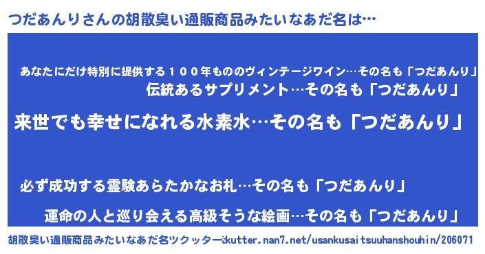 | 意味不明あだ名 | 『永久保存つだあんり』 |