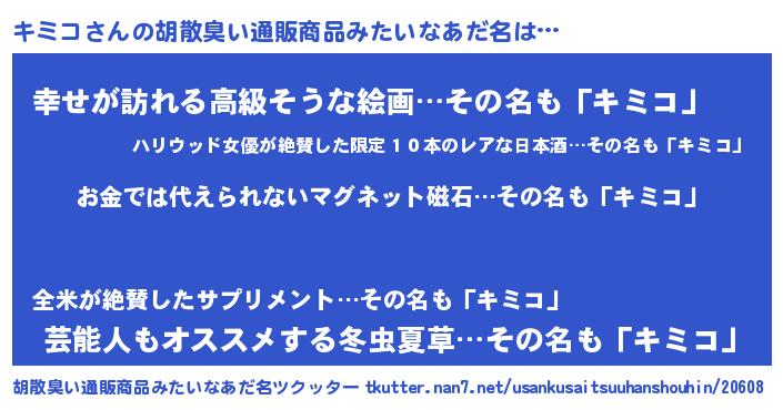 | 意味不明あだ名 | 『眠気覚ましガムキミコ味』『自称キミコ』 |