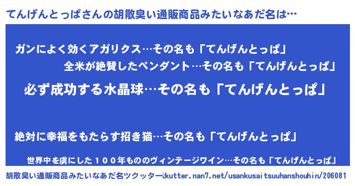 | 欧米人風あだ名 | 『アンジェラ・てんげんとっぱ』 |