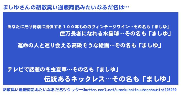 | 欧米人風あだ名 | 『ましゆクリステル』『ダレノガレましゆ』 |