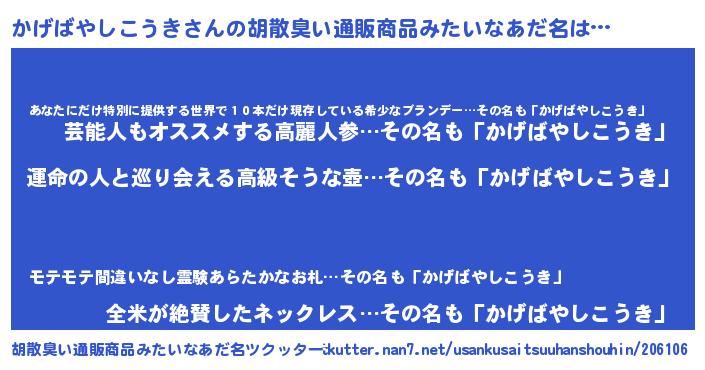 | 意味不明あだ名 | 『かげばやしこうきフォーエバー』 |