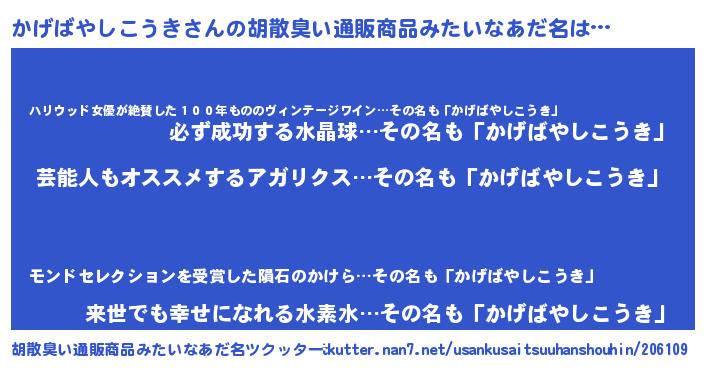 | ヘコむあだ名 | 『かげばやしこうき(爆)』『かげにゅー』 |