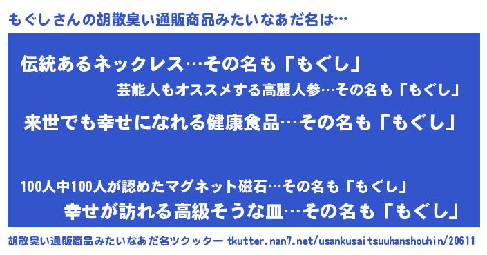 | 意味不明あだ名 | 『永久保存もぐし』『なめこ科もぐし属』 |