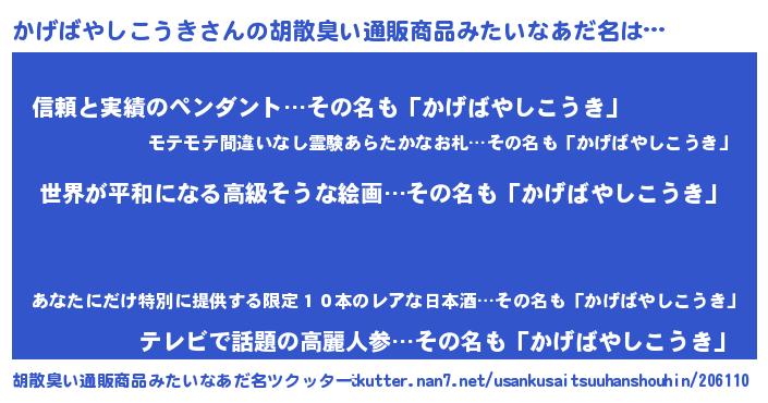 | 意味不明あだ名 | 『かげばやしこうきフォーエバー』 |
