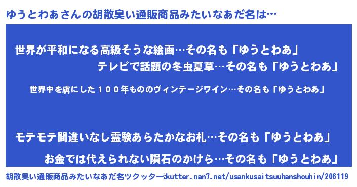 | 意味不明あだ名 | 『住所不定無職ゆうとわあ(9歳)』 |