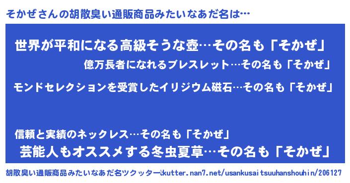 | ヘコむあだ名 | 『酢こんぶ』『そかにゅー』 |