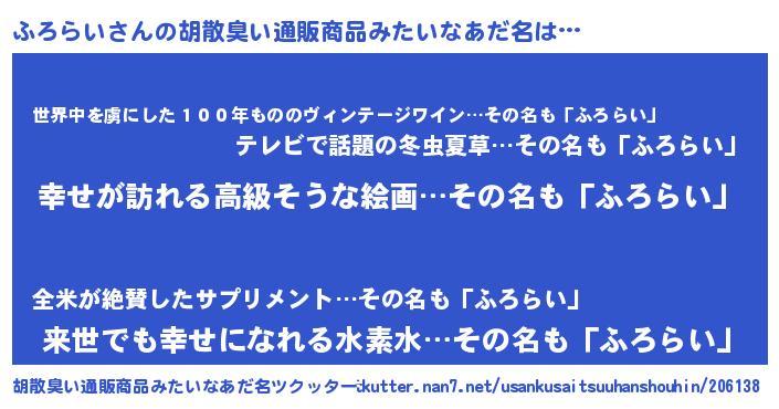 | ヘコむあだ名 | 『つくし』『ふろらい(笑)』『ふろお』 |