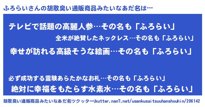 ふろらいさんの胡散臭い通販商品みたいなあだ名をツクッター!