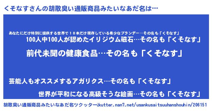 | 欧米人風あだ名 | 『トリンドルくそなす』 |