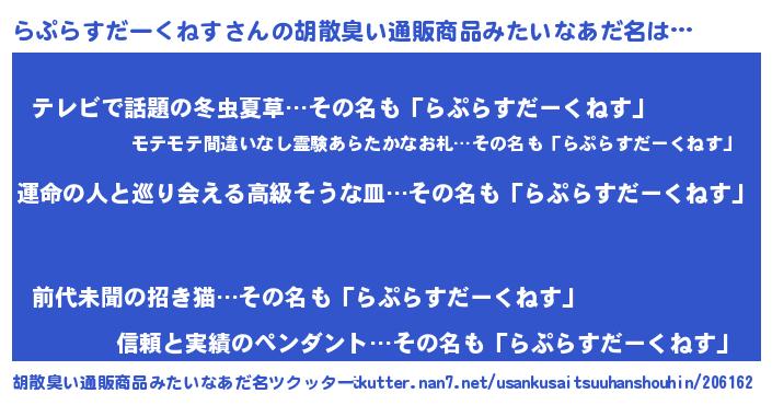 | 伝説のあだ名 | 『最強の陰陽師らぷらすだーくねす』 |
