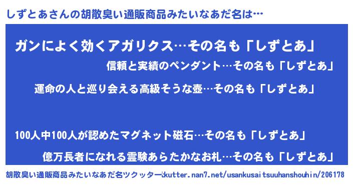 | 意味不明あだ名 | 『しずとあフォーエバー』『自称しずとあ』 |