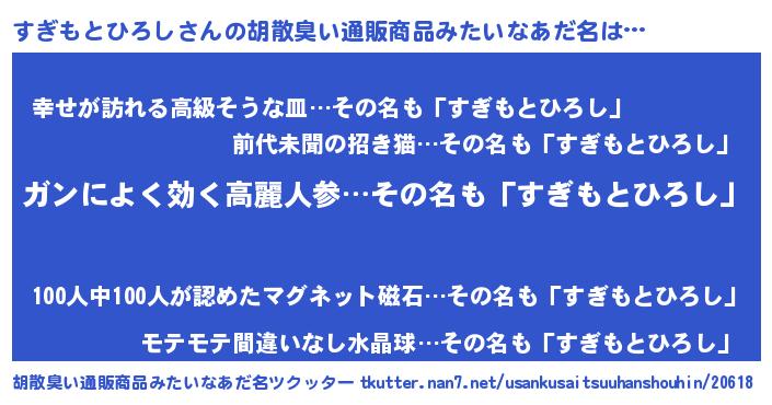 | 恥ずかしいあだ名 | 『スギモトヒロシデラックス』『すぎちん』 |