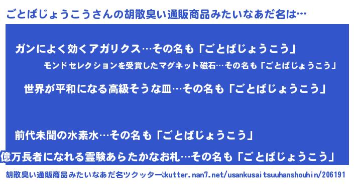 | 男性向けラノベタイトル風あだ名 | 『転生したらごとばじょうこうだった件』 |