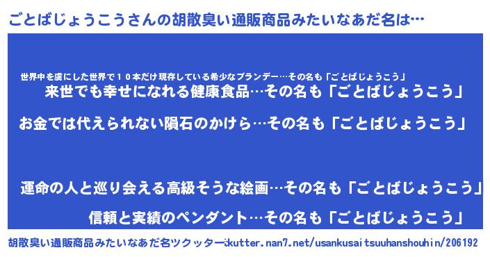 | ヘコむあだ名 | 『ごとぷりん』『ごとばじょうこう(笑)』 |