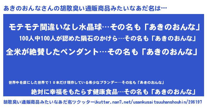| 意味不明あだ名 | 『とにかく怪しいあきのおんな』 |