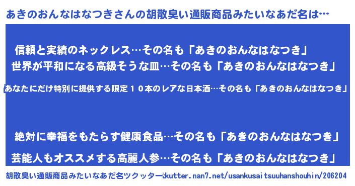 | 欧米人風あだ名 | 『ダレノガレあきのおんなはなつき』 |