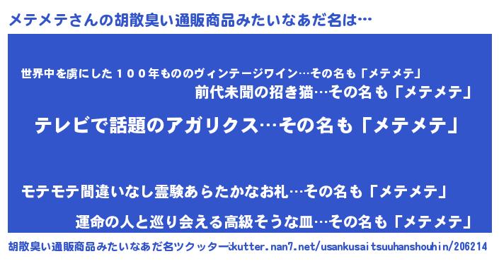 | 女子力 | 『自分のことを「メテっち」とか呼んじゃう』 |