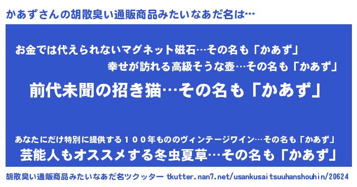 | 欧米人風あだ名 | 『ダルビッシュかあず』『ダニエルかあず』 |