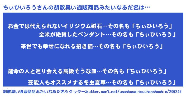 | 意味不明あだ名 | 『永久保存ちぃひいろう』 |